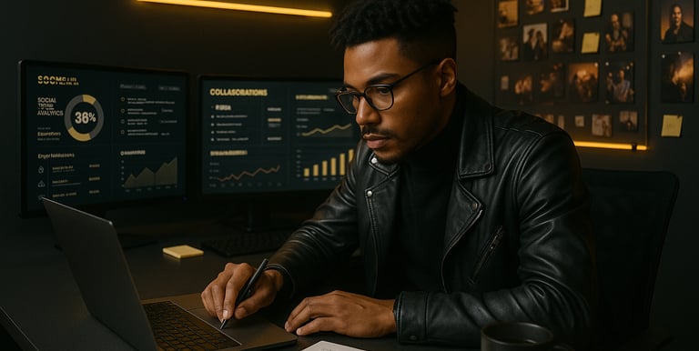 On imagine et déploie des campagnes qui te ressemblent : stratégies de réseaux sociaux, relations presse, sorties musicales, collaborations et actions médias. Tu reçois des press kits professionnels, des plans de communication concrets et un suivi sur les performances. Tout est mesuré, ajusté et optimisé pour transformer ta visibilité en opportunités.
